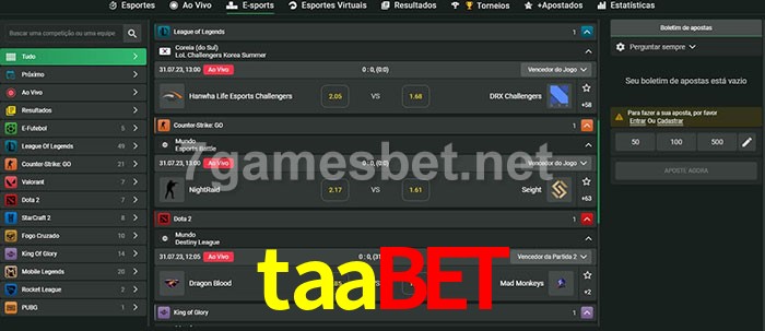 O taabet oferece uma grande seleção de opções de apostas em e-sports com probabilidades competitivas